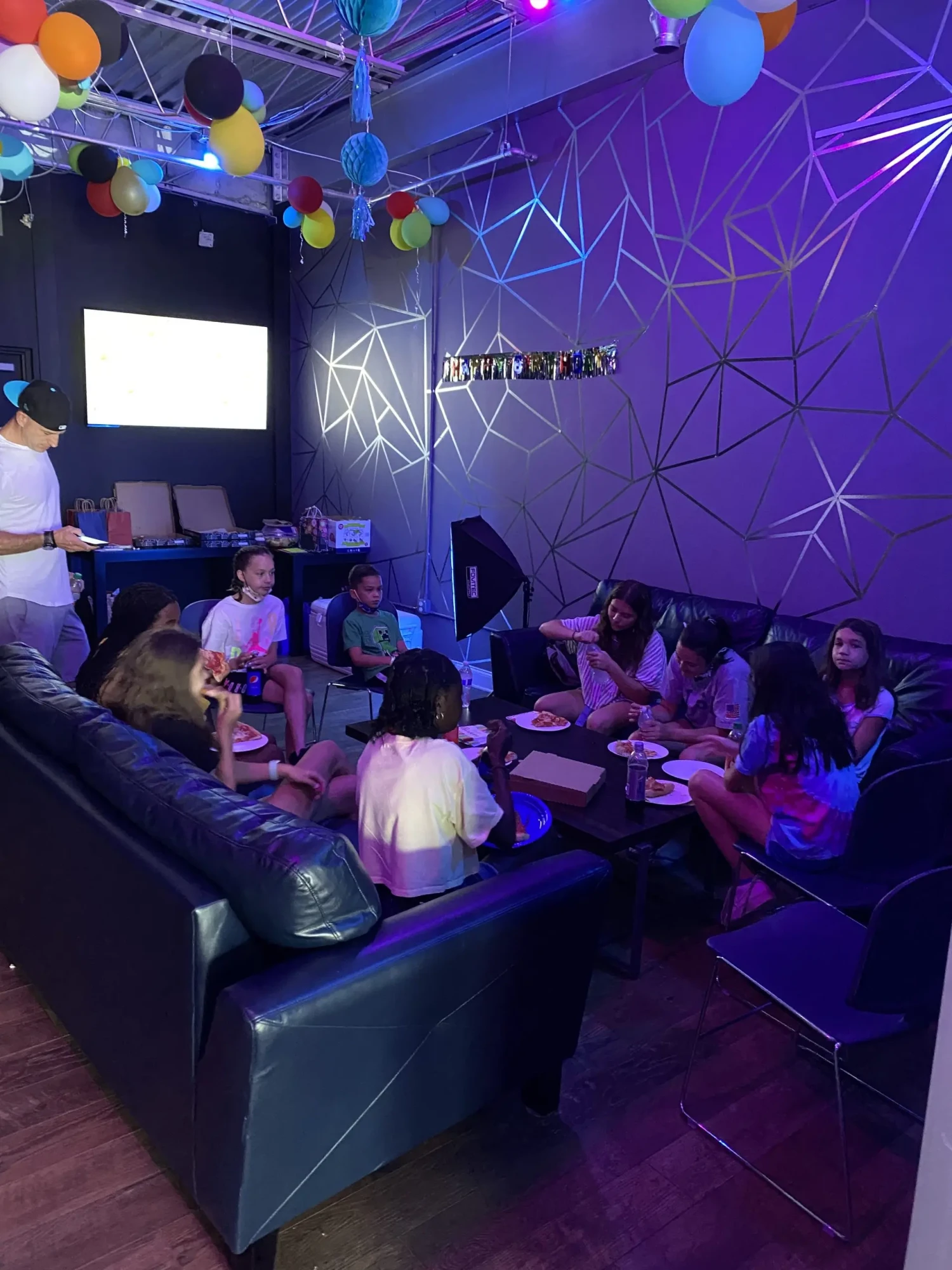 It’s is Premier Birthday Party destination. We are offering 10 virtual reality stations (10ftx10ft). Ten people can play at the same time seeing each other and communicating in virtual reality world. Its fun, safe and unique multiplayer experience.